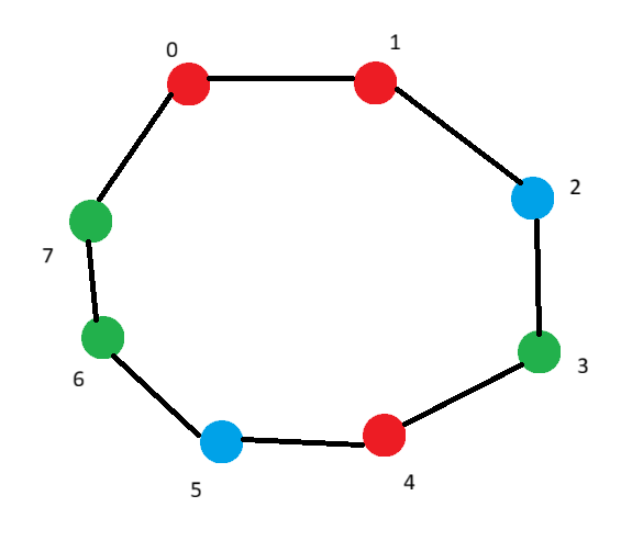 Consider a n-cycle graph : graph with n nodes labelled \(\{0,1…n-1\}\) and edges between i and (i+1) modulo n.
