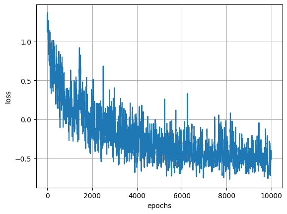 The losses for the overall training process oscillate a lot but we can see a downward trend, as in the plot below.